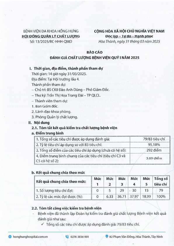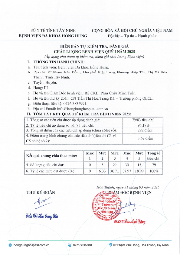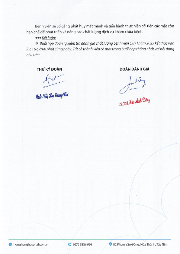 Trang Chủ » Tin tức » Tin Hồng Hưng » Biên bản tự kiểm tra, đánh giá chất lượng bệnh viện Quý I, năm 2025