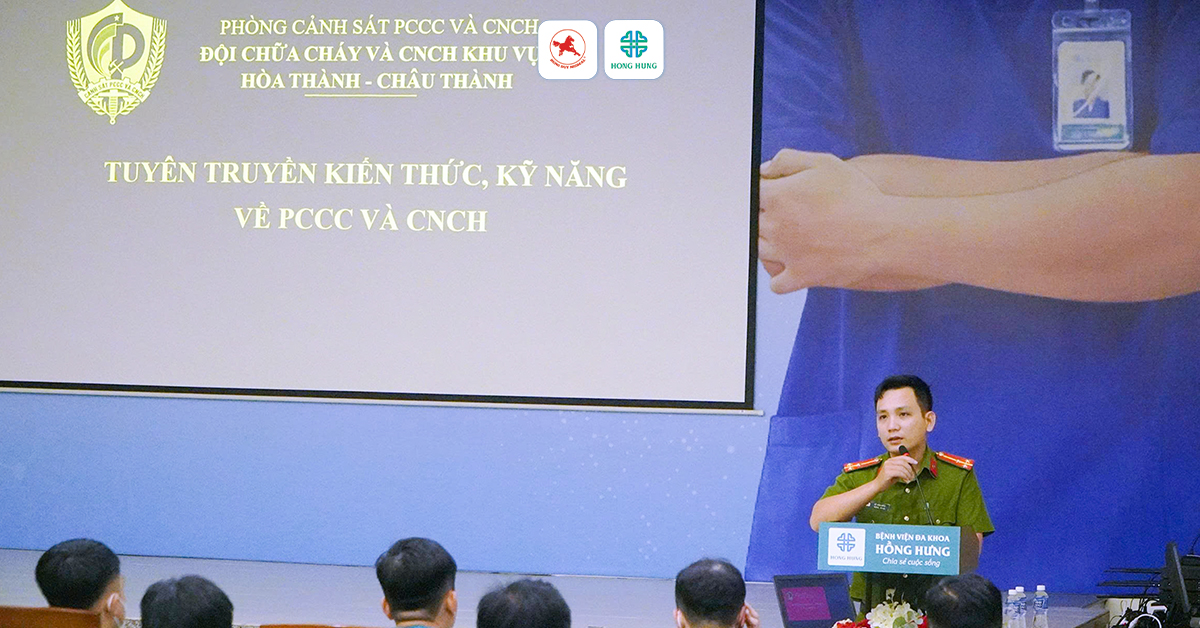 Nhằm nâng cao kiến thức, kỹ năng và ý thức chủ động trong công tác phòng cháy chữa cháy và cứu nạn, cứu hộ (PCCC & CNCH), ngày 19/12/2025 vừa qua, Bệnh viện Đa khoa Hồng Hưng đã tổ chức chương trình bồi dưỡng nghiệp vụ kết hợp diễn tập PCCC & CNCH dưới sự hướng dẫn và tập huấn từ Đội chữa cháy CNCH khu vực Hòa Thành – Châu Thành cho đội ngũ cán bộ, nhân viên y tế và lực lượng PCCC và CNCH cơ sở của bệnh viện.