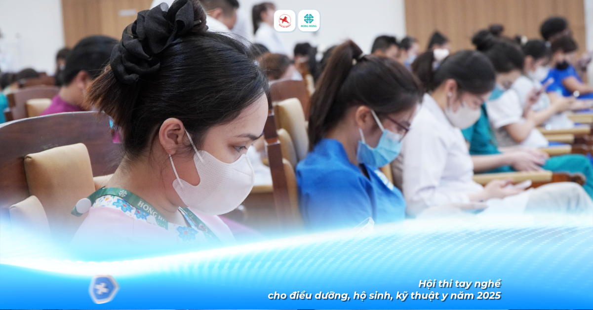 Sau 2 ngày diễn ra sôi nổi và nghiêm túc, Hội thi Tay nghề cho điều dưỡng, hộ sinh, kỹ thuật y năm 2025 tại Bệnh viện Đa khoa Hồng Hưng đã chính thức khép lại Vòng 1 với phần thi lý thuyết trắc nghiệm 50 câu.