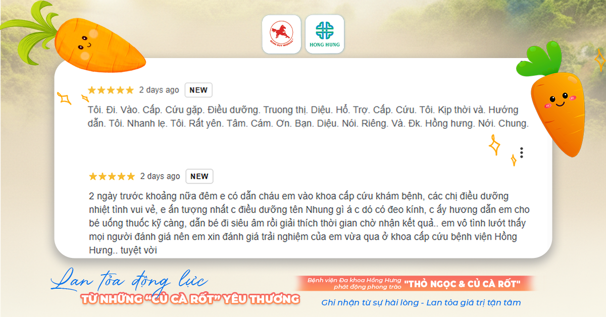 Bệnh viện xin gửi lời cảm ơn chân thành đến tất cả các anh chị em nhân viên y tế – đặc biệt là đội ngũ Khoa Cấp cứu – những người đã và đang ngày đêm thầm lặng cống hiến vì sức khỏe cộng đồng. Sự hài lòng và những lời khen ngợi từ Quý khách hàng chính là nguồn động viên quý giá nhất, tiếp thêm sức mạnh để chúng tôi vững bước trên con đường đã chọn.