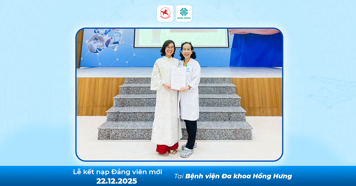 Chiều ngày 22/12/2025, trong không khí trang nghiêm và đầy ý nghĩa, Chi bộ Bệnh viện Đa khoa Hồng Hưng đã long trọng tổ chức Lễ kết nạp Đảng viên mới cho 03 quần chúng ưu tú, gồm: