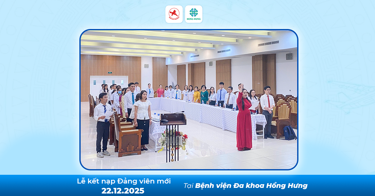 Chiều ngày 22/12/2025, trong không khí trang nghiêm và đầy ý nghĩa, Chi bộ Bệnh viện Đa khoa Hồng Hưng đã long trọng tổ chức Lễ kết nạp Đảng viên mới cho 03 quần chúng ưu tú, gồm: