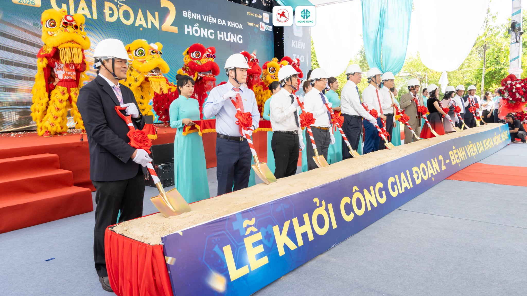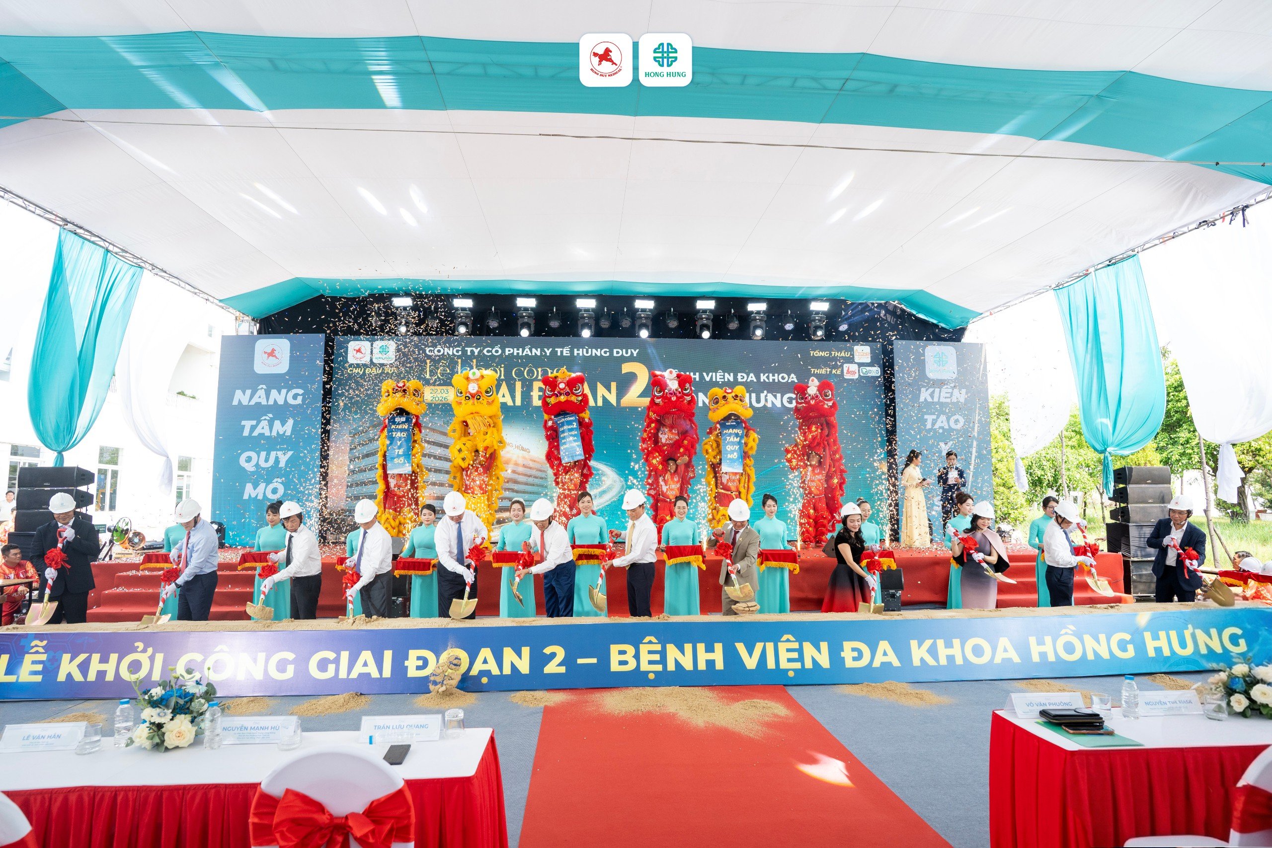 Đại biểu thực hiện nghi thức khởi công xây dựng công trình Bệnh viện Đa khoa Hồng Hưng giai đoạn 2