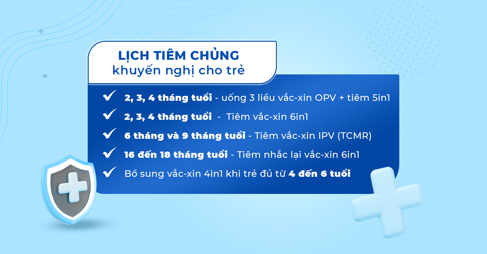 Lịch tiêm chủng khuyến nghị cho trẻ như sau: