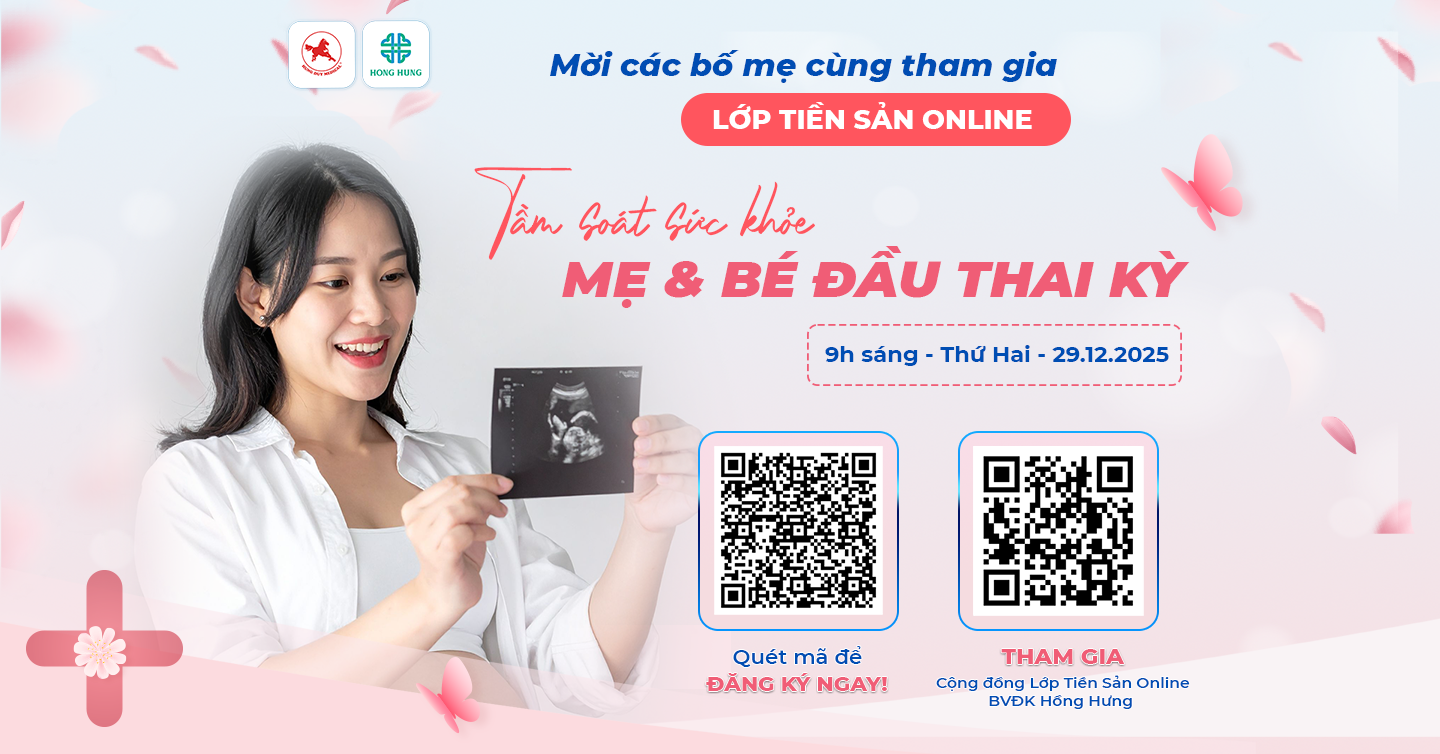 Thấu hiểu điều đó, Khoa Sản Sanh – Bệnh viện Đa khoa Hồng Hưng đã tổ chức lớp học tiền sản trực tuyến với chủ đề “Tầm soát sức khỏe mẹ và bé đầu thai kỳ” nhằm giúp mẹ bầu hiểu rõ ý nghĩa của tầm soát sớm và an tâm hơn trong những bước đầu tiên của hành trình mang thai.